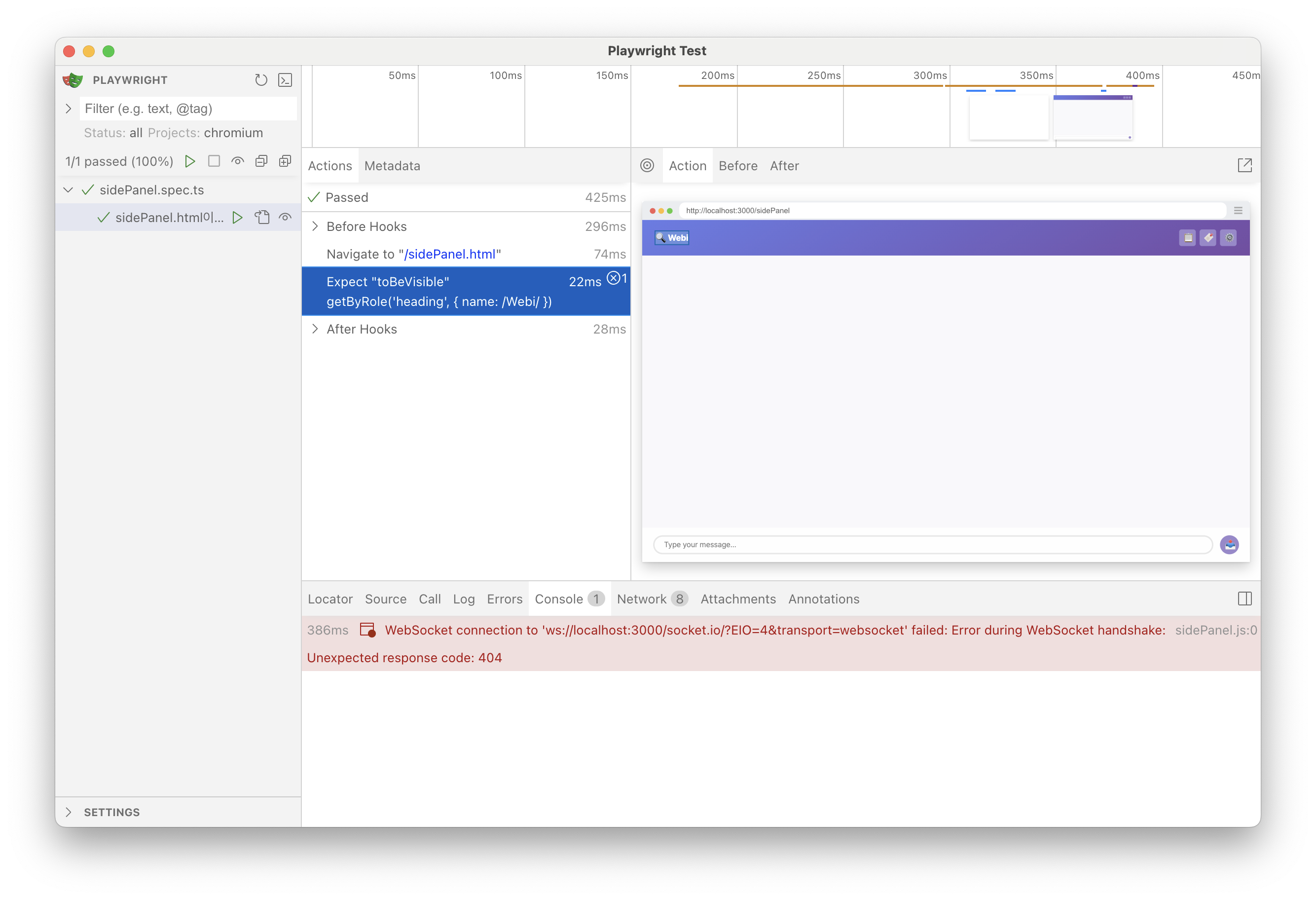 그런데 playwright에는 크롬 내부 기능인 사이드 패널이 열리는지 검사를 할 수 없다고 해서, 사이드 패널 페이지가 잘 렌더링되는지를 검사하기로 했다.