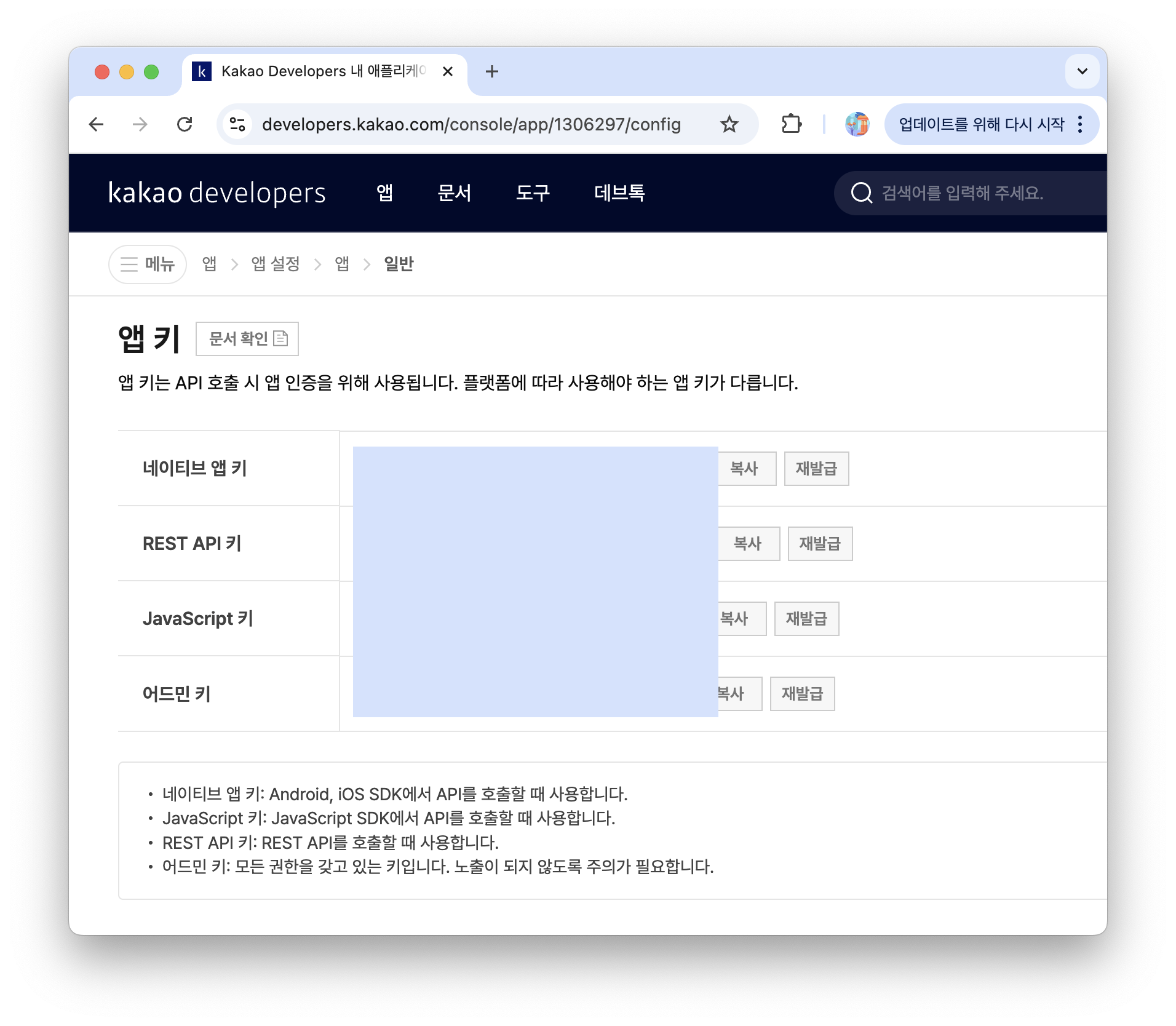 여기서 `KAKAO_CLIENT_ID`는 [앱 > 앱 설정 > 앱 > 일반]에 있는 앱 키를 사용한다.