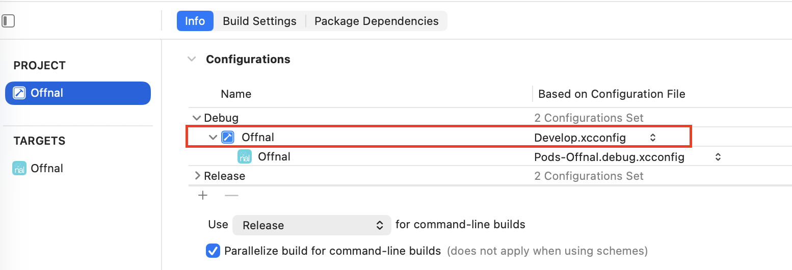 또한 DEBUG나 RELEASE와 같은 빌드 구성(Build Configurations) 별로 설정을 분리하여 관리할 수 있다.